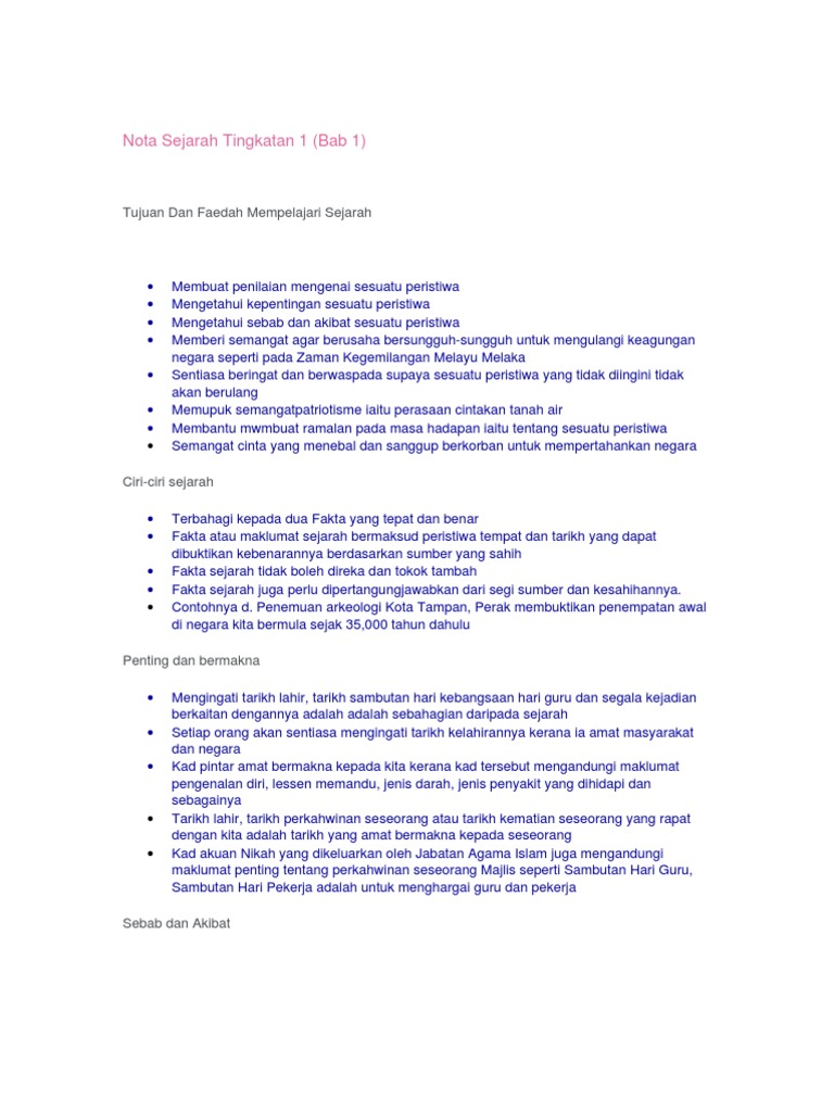 Sekolah menengah kebangsaan parit bunga. Bab 1 sejarah tingkatan 1: Kepentingan mempelajari sejarah ~ tujuan mempelajari sejarah ~ faedah mempelajari sejarah. Mengetahui sebab dan akibat sesuatu peristiwa 4. Sejarah ialah peristiwa yang berlaku pada masa lalu.