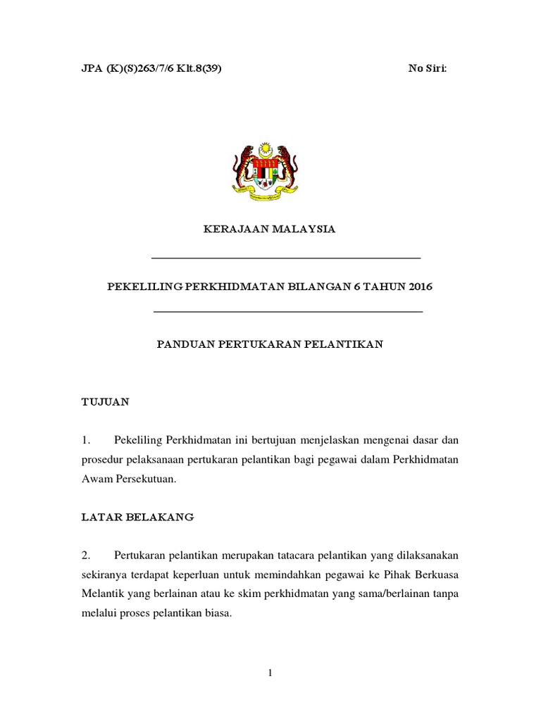 Related : Pekeliling Perkhidmatan Bil 6 Tahun 2017 / 15 tahun 2002 pegawai perkhidmatan pendidikan bidang sains, matematik dan bahasa inggeris 7 pekeliling perkhidmatan panduan pertukaran pelantikan bil..