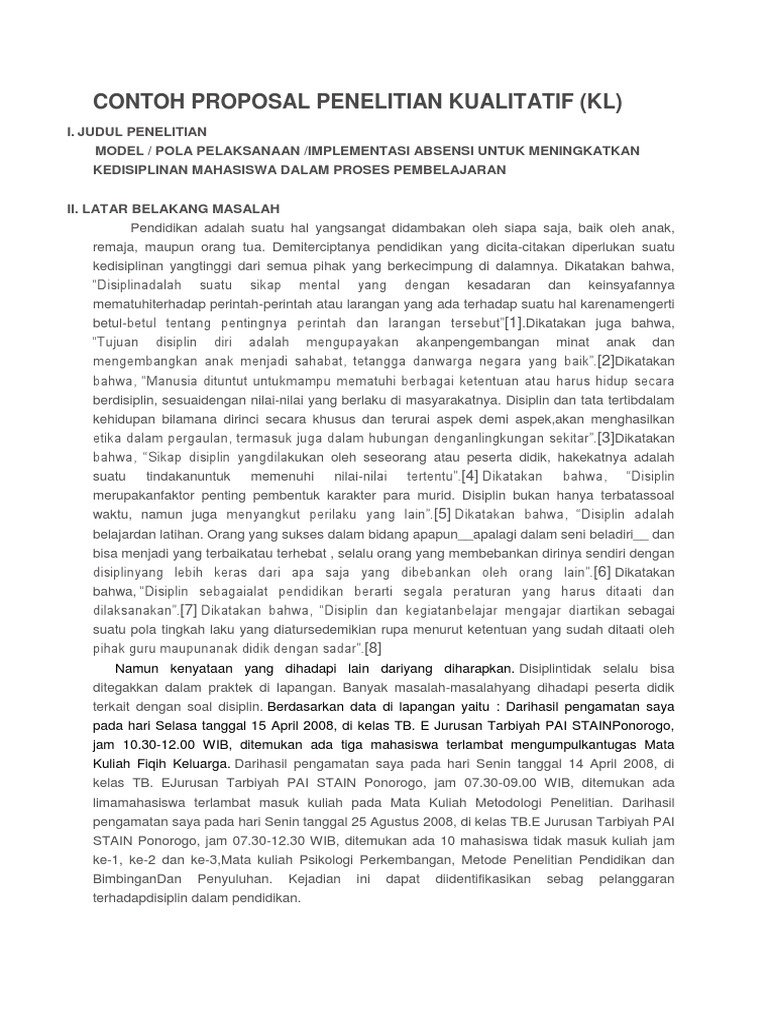 Agar lebih memahami, simak contoh metode penelitian kualitatif di bawah ini. Definisi kesahan dan kebolehpercayaan kesahan didefinisikan sebagai ketepatan (appropriateness), kebenaran (truthfulness), bermakna Dibawah ini adalah beberapa kata kunci yang biasanya dicari untuk beberapa contoh dari pembuatan proposal. Terdapat beberapa instrumen atau alat kajian yang digunakan untuk mendapatkan data iaitu soal selidik, ujian pra dan pasca, pemerhatian dan temu bual tidak berstruktur. 4.3.1 pemerhatian pengkaji telah membuat pemerhatian terhadap tempat kajian sebelum mendapat responden.